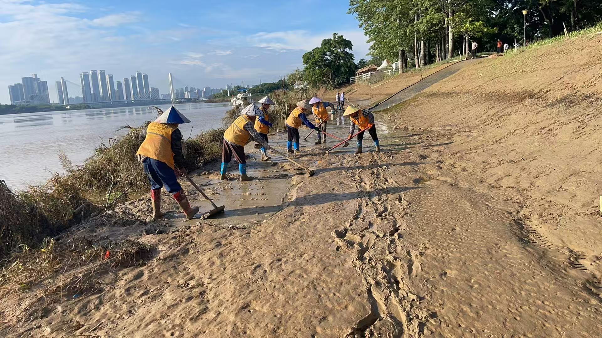 随着洪峰过境,邕江水位逐渐回落,10月11日起,集团公司迅速启动应急响应机制,持续组织昇睿公司物业工作人员、昇驰公司环卫工人及其他子公司人员力量,在邕江沿岸公园(青秀区段)有序开展清淤工作。